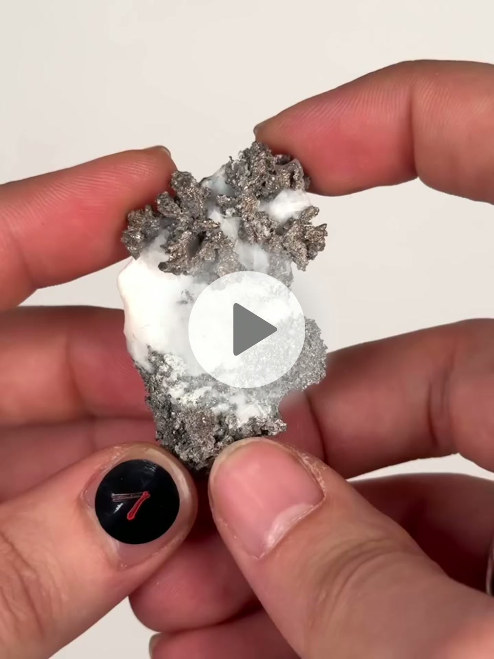 Dieses gediegene Silber auf strahlend weißem Calcit stammt aus einem neuen Fund in der Silber-Lagerstätte in Zgounder, Marokko.