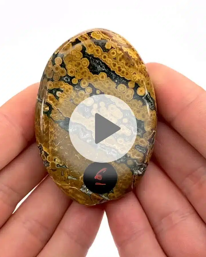 Wenn man aber die Zuordnungen der Farbenergie in Betracht zieht, so kann man anhand der Farbe auf weitere Eigenschaften schließen, sodass ein hauptsächlich blauer Stein eher harmonisierend und ausgleichend wirkt (wie der sanfte Ozean und das Element Wasser), Brauntönen hingegen sagt man eine stärker erdende Energie nach. Dieser Ozeanjaspis kommt aus Indonesien. Die dortigen Vorkommen dieser Steinsorte überzeugen durch ihre außergewöhnlichen Farb-Varianten und enthalten oft glitzernde Quarz-Drusen oder klare Chalcedon-Flächen.