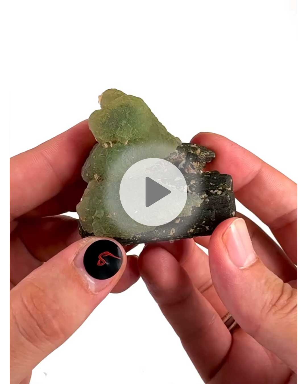 Prehnit ist ein grünes oder gelbliches Silikatmineral, das in kleinen Kugeln in vulkanischem Gestein oder manchmal als Stalaktiten an der Decke von Höhlen wächst. Dabei findet man ihn besonders häufig in Gemeinschaft mit dem dunkelgrünen Epidot, wobei er diesen ganz oder teilweise umschließt. So vereinen sich die Eigenschaften dieser beiden Mineralien in diesen besonders spektakulären Stücken.