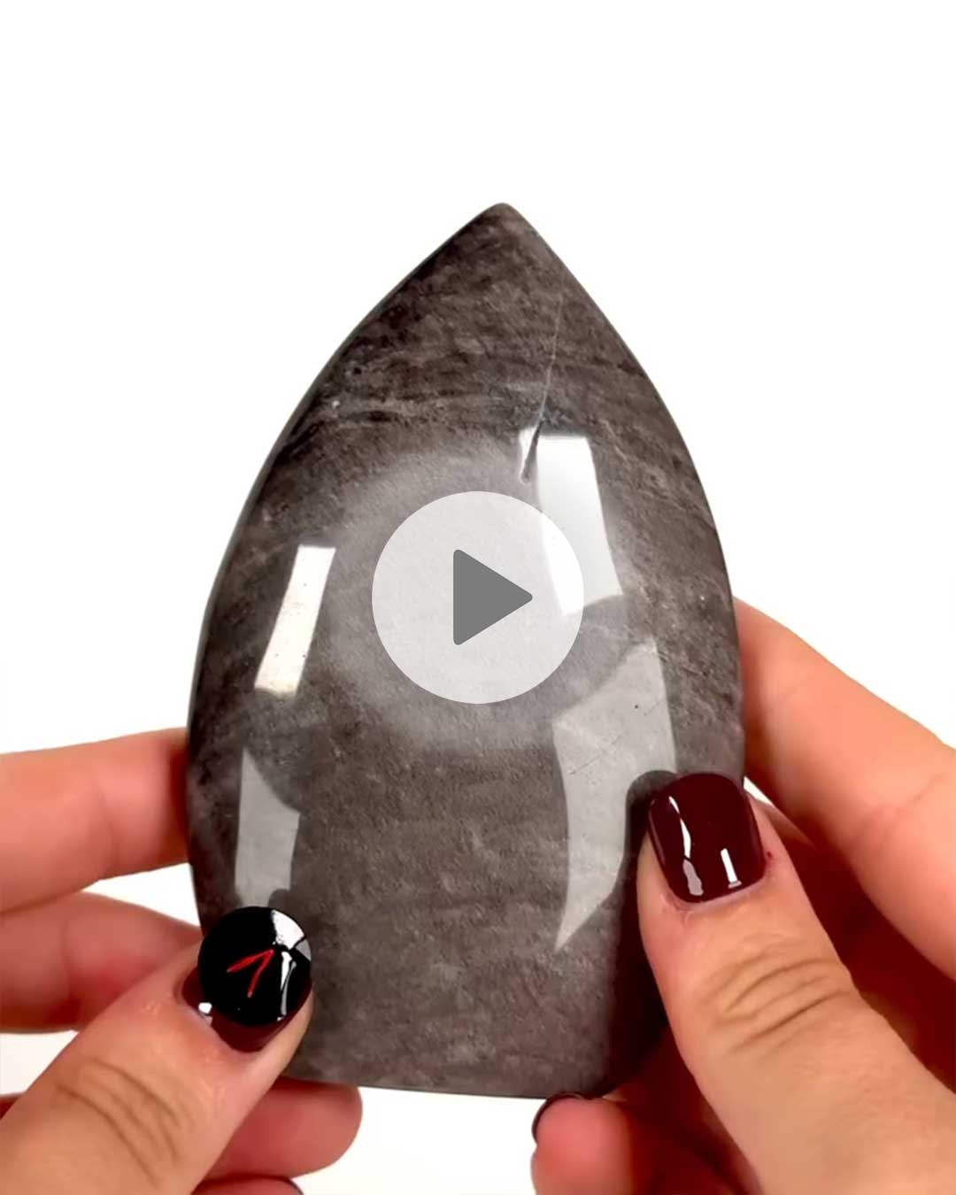 Wie ein schimmernder Spiegel unterstützt Silberobsidian dabei, die Teile von sich selbst zu sehen, vor denen man sich vielleicht scheut. Der Blick in den Silberobsidian soll den Blick in die eigene Seele ermöglichen.