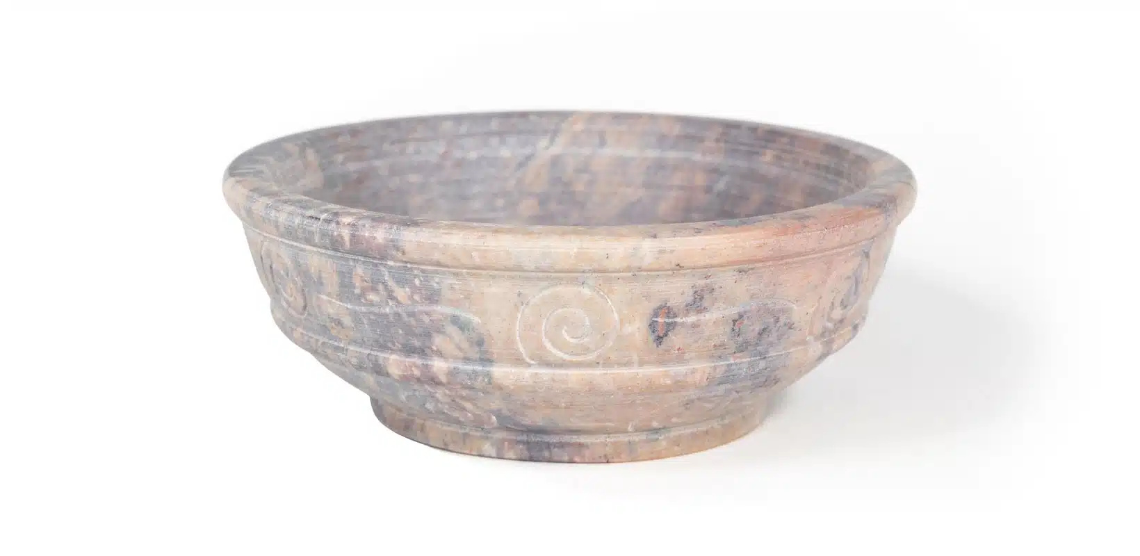 Räucherschale Speckstein naturfarben mit Rankenmuster
